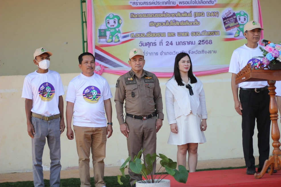 #กิจกรรมเดินขบวนรณรงค์ประชาสัมพันธ์เชิญชวนไปใช้สิทธิเลือกตั้ง(Big Day) ในการเลือกตั้งสมาชิกองค์การบริหารส่วนจังหวัดเชียงราย และ นายกองค์การบริหารส่วนจังหวัดเชียงราย ******************* (วันนี้)วันที่ 24 ม.ค.2568 เวลา 09.00 น. พ.ต.อ.กฤษฎา งามจิตต์ ผกก.สภ.เวียงชัย ร่วมกิจกรรมเดินขบวนรณรงค์ประชาสัมพันธ์เชิญชวนไปใช้สิทธิเลือกตั้ง(Big Day) ในการเลือกตั้งสมาชิกองค์การบริหารส่วนจังหวัดเชียงรายและ นายกองค์การบริหารส่วนจังหวัดเชียงราย ร่วมกับหัวหน้าส่วนราชการในพื้นที่อำเภอเวียงชัย, นักเรียน ,คณะครู, และ ประชาชนในพื้นที่ ณ สนามหน้าที่ว่าการอำเภอเวียงชัย อ.เวียงชัย จว.เชียงราย
