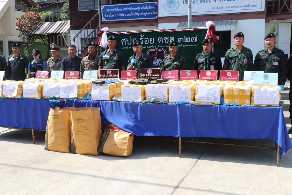 เมื่อเวลา 11.00 น.วันที่ 28 ม.ค. 67 ที่ บก.ร้อย ตชด.327 อ.แม่จัน จ.เชียงราย พล.ต.ต.รุ่งโรจน์ ฐากูรปุณยสิริ รอง ผบช.ตชด. พล.ต.ต.วรพัฒน์ บุญมา ผบก.ตชด.ภาค 3 พล.ต.ประพัฒน์ พบสุวรรณ ผบ.ฉก.กกล.ผาเมือง พ.ต.อ.รังสิมันต์ สงเคราะห์ธรรม รอง ผบก.ตชด.ภาค 3 พ.ตอ.รัฐพล น้อยช่างคิด รอง ผบก.ภ.เชียงราย พ.ต.อ.กฤษฎา งามจิตต์ ผกก.สภ.เวียงชัย ร่วมกันแถลงว่า