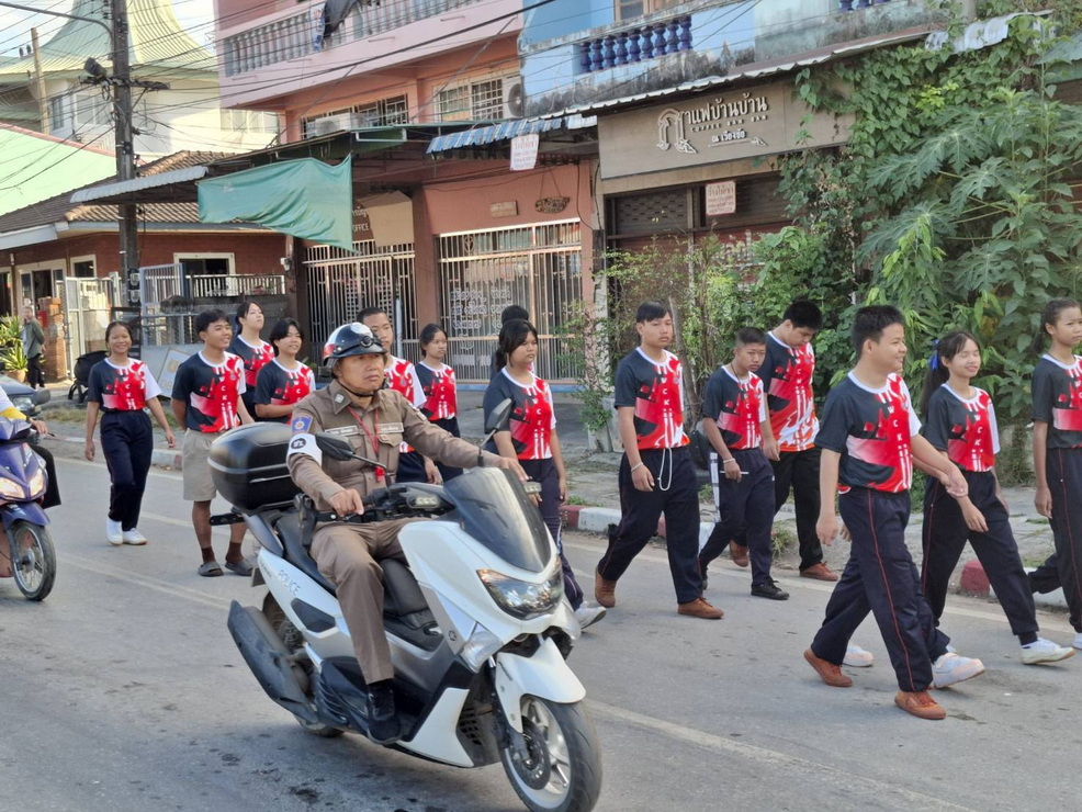 วันที่ 28 พฤศจิกายน 2567 โดยการอำนวยการของ - พ.ต.อ.กฤษฎา งามจิตต์ ผกก.สภ.เวียงชัย - พ.ต.ท.วรเทพ คำดี รอง ผกก.ป.สภ.เวียงชัย - พ.ต.ท.แดน ใจหาญ สวป.สภ.เวียงชัย มอบหมายให้ - ร.ต.อ.สมฤทธิ์ ติ๊บโคตร รอง สวป.สภ.เวียงชัย พร้อมด้วย ชุดจราจร, สนับสนุนการอำนวยความสะดวกด้านการจราจรและนำขบวนเดินพาเหรดกีฬาสีภายในของโรงเรียนเวียงชัยวิทยาคม ประจำปี 2567 ต.เวียงชัย อ.เวียงชัย จว.เชียงราย