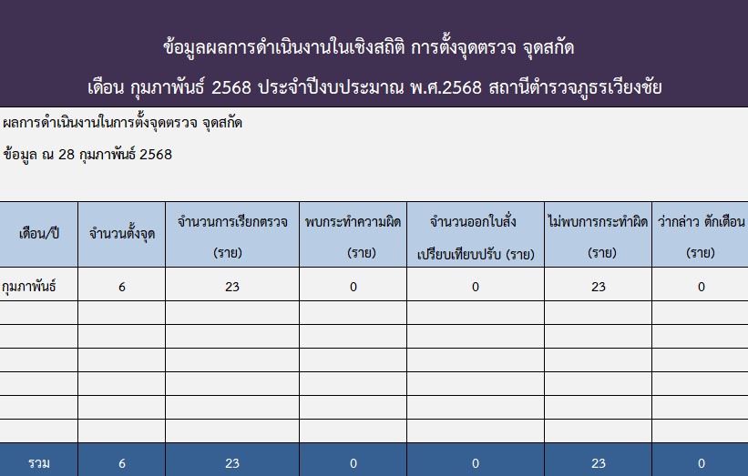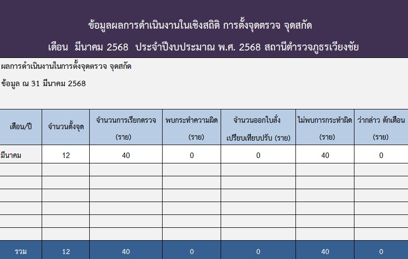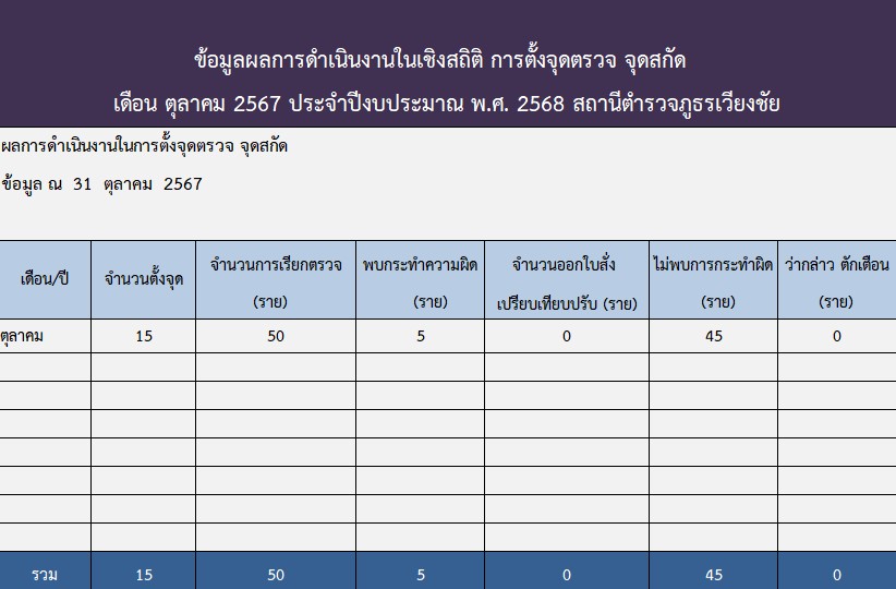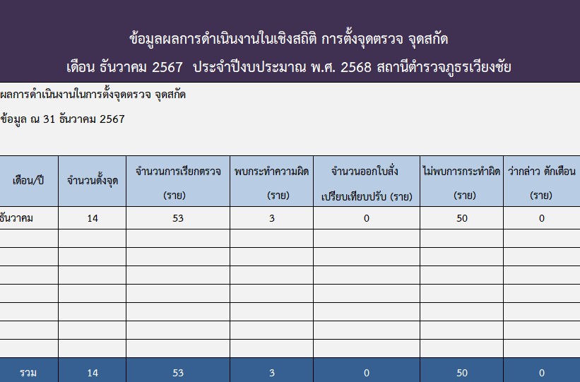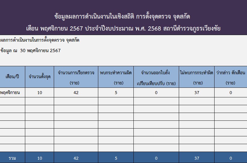 สถิติในการตั้งจุดตรวจ จุดสกัด